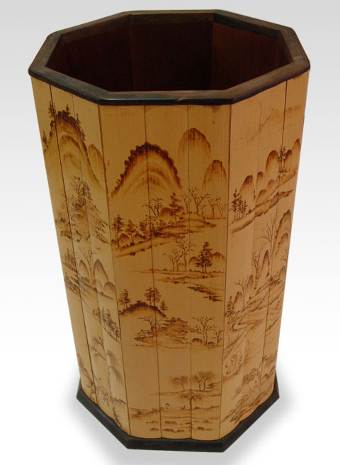 Octagonal Nakjuk (Bamboo Pyrography) Brush Holder with Landscape Designs