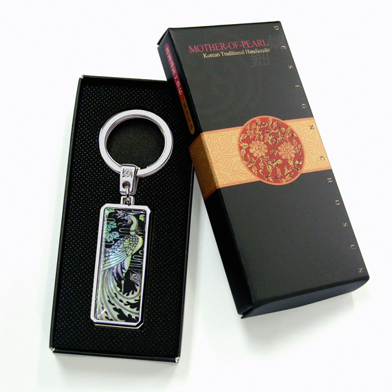 A pair of phoenixes (bonghwang) with fully-opened wings and tail face each other embracing traditional Yin Yang symbol. The phoenix (bonghwang), along with the dragon, is the symbol of an emperor and is believed to herald a time of peace and prosperity.